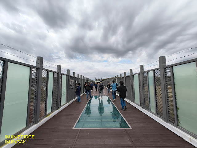 Selepas melihat lokomotif yang menjadi mangsa kekejaman Perang Korea, kita melawat pula Imjin River Dokgae Bridge yang turut menjadi mangsa kekejaman perang. Jambatan ini terletak di belakang lokomotif tadi. Ada bayaran tambahan dikenakan untuk masuk ke jambatan ini tetapi dah lupa berapa harganya.